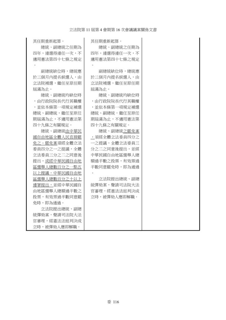 本黨呼籲立法院修正總統副總統罷免之規定